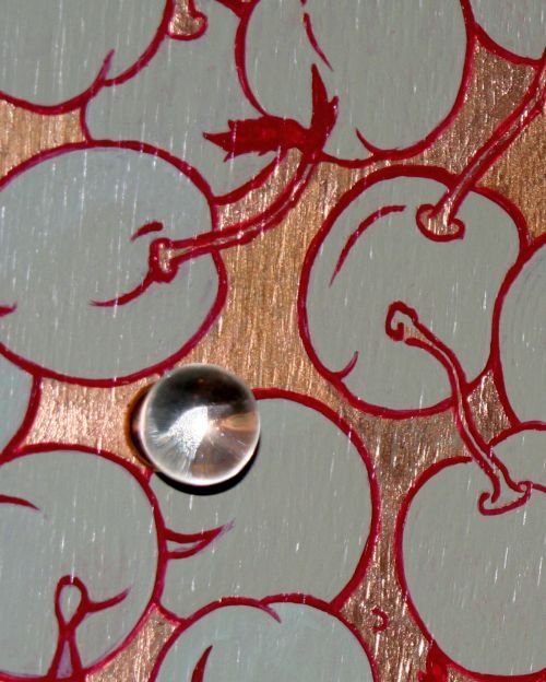 Maße: 58 x 50 x 35 cm Fondton: Bronze-Reichbleichgold Malerei in Acryl Glasknäufe